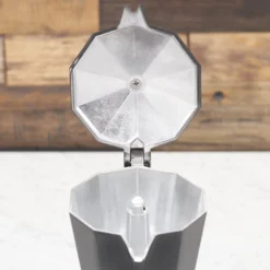 The Classic Moka Pot consists of an aluminum body, polyamide handle and knob and silicone gasket, and also comes in 1-cup and 3-cup sizes.