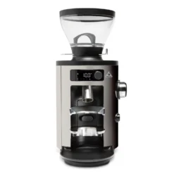 The Mazzer Super Jolly is a stepless, doser grinder with manual timed grinding functionality. If you like the look and feel of the Mini, but need a higher capacity and bigger burrs for a more high octane grinding situation, the Super Jolly is the logical next step up. Its 350 watt motor is a notable upgrade from the Mini’s 250 watt one, and the extra large hopper holds significantly more beans than the short hopper on the latter. We find the Super Jolly impressive and simple to use by way of a turning a timer dial anywhere up to sixty seconds. The grounds are deposited into a doser, which can be adjusted to dispense anywhere from 5.5 to 9 grams into your portafilter with a flick of the dosing lever. Those grounds can then be easily tamped with the doser’s built-in tamper. Both the doser and its built-in tamper are designed with high-speed scenarios in mind, where you want to be able to quickly grind and tamp for several drinks in a row. We love it around the office for this fact alone, and think it would be excellent in a cafe setting, or a serious home entertainer.