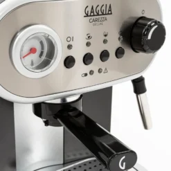 When we first saw the Gaggia Carezza, we forgot what year it was. The retro Italian styling is a blast from the past, belying what we’ve found to be substantial brewing power for its class. A built-in temperature gauge shows a real-time readout of the boiler, which heats up rapidly. In fact, the Carezza De LUXE is ready to brew in within moments of powering on; ideal for anyone on a tight schedule. We think this machine does a lot of things right. Its automated pre-infusion function evenly soaks your coffee to maintain temperature and aid in the extraction of your coffee’s flavor profile. The Carezza’s specially designed Crema Perfetta double-walled pressurized portafilter is specifically designed for use with ESE pods and ground coffee, eliminating the need for a grinder. Tamping isn’t necessary either, but our tests found that a light tamp can really improve your shots.