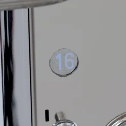 The Mozzafiato Cronometro R is a heat exchange PID machine with a near-silent rotary pump, and can be plumbed directly into a water line. The Cronometro version of the Mozzafiato features a hidden shot timer just above the power switch with a digital readout that appears when the pump is activated and disappears when it’s off, blending in with the stainless steel housing.